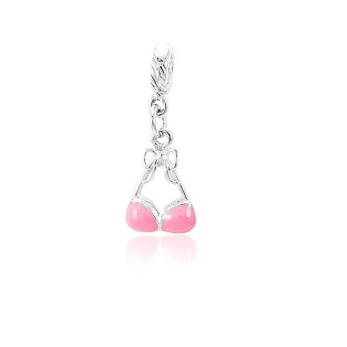 Berloque biquíni rosa banhado à prata 925, antialérgico, com verniz para durabilidade.